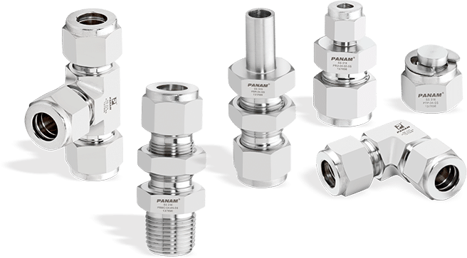 As conexões roscadas fabricadas pela PANAM atendem pressões até 15.000 PSI (1034 bar) e estão disponíveis em tamanhos desde 1/16″ até 2”.